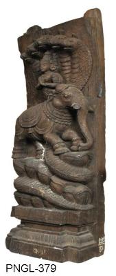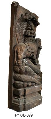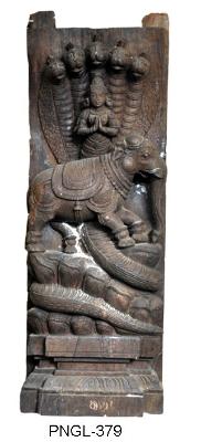 | Description / विवरण | Nagini is a decorative art piece of the temple chariot. She is in anjali-mudra shown in the background. Five hoods over the head. Coiled tail is shown prominently. A caparisoned elephant marching towards left is shown in the foreground. Probably represents an episode of story. |