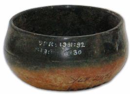 | Description / विवरण | Black and red ware deep bowl with tapering shoulders and slightly incurved thickened featureless rim. A deep groove on the body. |