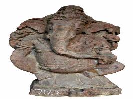 | Description / विवरण | Ganesa seated in ardha paryankasanaposture. The trunk is very long and turned towards right. The head is adorned with jatamakuta in diminishing tiers. The rear right hand is in chin-mudrawith the thumb touching the tip of the fore finger and front right hand rests on the knee. The rear left hand holds the pasa noose , while the front left hand holds the modaka. There is kanthamala with square pendants, udarabandha and yajnopavita. The arms are decked with keyuras and wristlets where as there are anklets on the legs. |