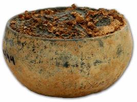 | Description / विवरण | Black and red ware deep bowl with round base and incurved rim. |