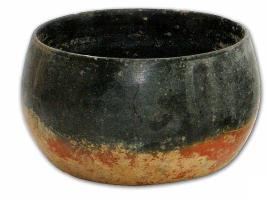 | Description / विवरण | Black and red ware deep bowl with round base and incurved featureless rim. |