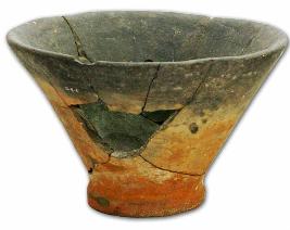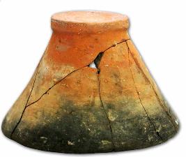 | Description / विवरण | Black and red ware pot with flat base and high neck, straight shoulder with featureless rim. |