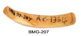 | Description / विवरण | A shell bangle piece with thick body at the middle and irregularly broken ends. |