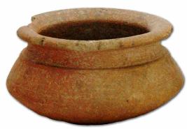 | Description / विवरण | Red ware pot with round base, constricted neck, everted thickened featureless rim, and thick line at the shoulder. |