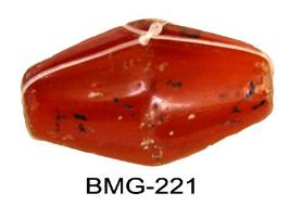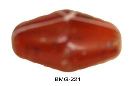 | Description / विवरण | A Cornelian stone bead, slightly flat ends on either side having perforation at the middle of the body. Probably used as a pendant. |