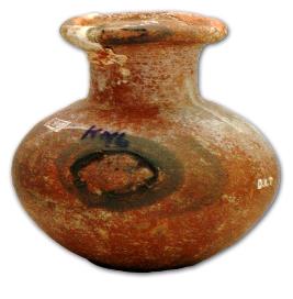 | Description / विवरण | Medium size red ware pot with round base and globular body, high neck with splayed out thickened rim. |