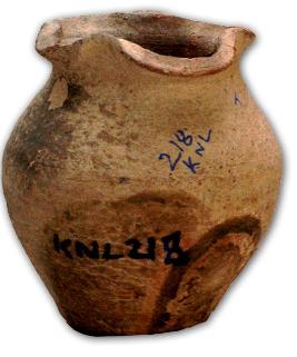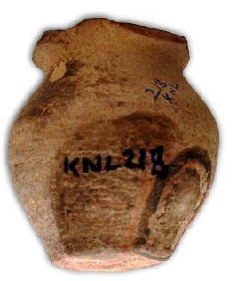 | Description / विवरण | Red ware vase with wavy tetra looped thick flat rim and flat base. |