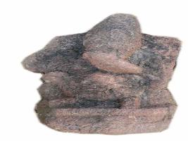 | Description / विवरण | A seated ganesa . The head is ornamented with kirita makuta in the shape of a conical cap . The trunk is turned towards right . Other details are not clear. |