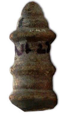 | Description / विवरण | Chocolate red color lid looks like a poornakalasa on a pedestal. The finial part is broken and missing, prominent double groove is seen on the body. |