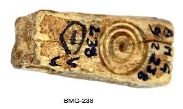 | Description / विवरण | Broken dice made of ivory. It has four faces. Each face has circles. Each circle encloses two small circles within each other. It retained two circles on two faces. |