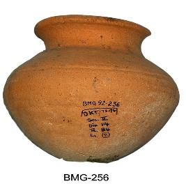 | Description / विवरण | Red ware pot with saggar base, slightly carinated waist, sloppy shoulders, constricted neck, slightly incurved thick rim. |