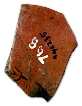 | Description / विवरण | Broken piece of highly polished red ware pot with two concentric grooves. |