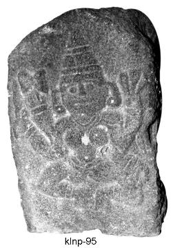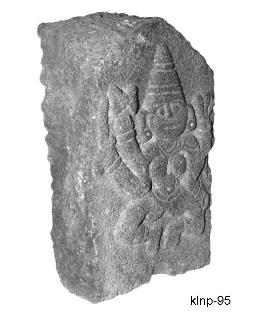 | Description / विवरण | Chaturbhuja Kali seated in lalithasana posture. She holds trident and damaru with her raised upper left and right hands respectively. She holds khadga in her right hand and patra in her left hand. She has oval face, long nose, wide thick lips, round buldged eyes and fleshy cheeks. She wears conical karandamakuta, kundalas, kanthaharas,waist-band, wristlets, bhujakirits, ardhoruka tied with waist-band. |