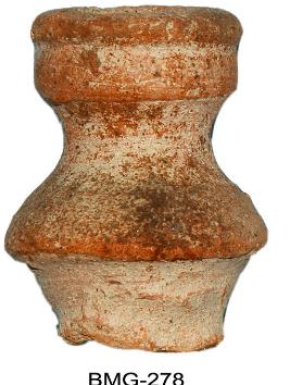 | Description / विवरण | A red ware measuring vessel pot on pot type with flat base and slightly carinated body having double convex neck. It has everted externally thick flat cut rim. Of medium fabric, it is treated with fine slip. |