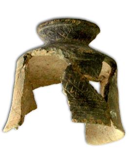 | Description / विवरण | Black ware cup with a circular high base and straight shoulder, slightly outturn featureless rim, decorated with criss - cross design in between multiple concentric grooves. |