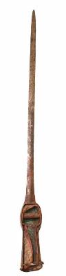 | Description / विवरण | Fata with round solid and stiff blade and sharpened at the end with a decorative round handle. |