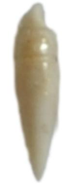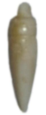 | Description / विवरण | A carrot cone shaped pendent. It has pointed bottom and round top broken . with two prominent grooves for hanging, it has neatly finished body. |