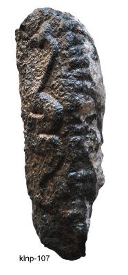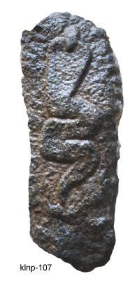 | Description / विवरण | A single hooded naga with curved tail and round object just like mani jewel over its head. |