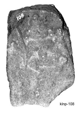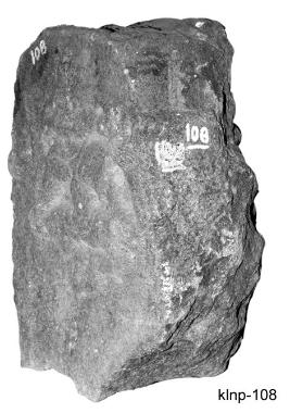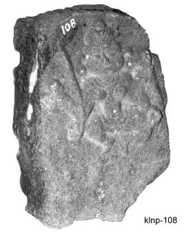 | Description / विवरण | Chamundi sitting in lalithasanaposture holding damaru and trident in her rear hands and long sword in her right forehand and patra in her left fore hand. She wears jatamakuta, circular kundalas, a long hara with pendent hanging between her breasts and mekhala. She is shown with abnormal features like swollen face with broad lips, snubbed nose, protruded eye balls. |