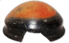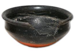 | Description / विवरण | Black and red ware bowl with carinated body and sagger base. Splayed out externally thickened flat rim. |