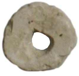 | Description / विवरण | Circular flat red ware pendent with, thick body and a hole at the centre. |