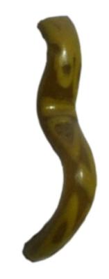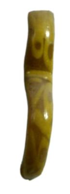 | Description / विवरण | Fragment of glass bangle decorated with yellow color pigment on the curved body. The decoration includes thick horizontals, circles and other geometric designs. |