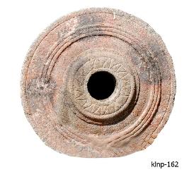 | Description / विवरण | Chariot wheel having elevated hub with a hole. Hub is decorated with petal design inbetween two curckes. Hub is surrounded by concentric circles. The ventral side is plain. |