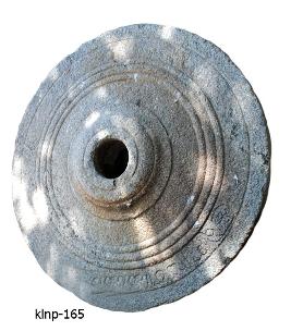 | Description / विवरण | Chariot wheel having raised hub encircled by concentric circles. It has three concentric circles away from the hub, followed by a deep groove on the periphery. There is a label inscription below the deep groove of the rim in 19th Century A.D. Telugu characters. |