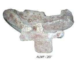 | Description / विवरण | A broken sculpture of human figure. It shows intact lower portion, having two folded legs seated in lalitasana posture on a pitha. Probably he kept his left hand on his folded knee faintly seen . He wears ardhoruka. Below the pitha is a square projection to insert the idol into socket of a Panavatta. |