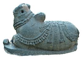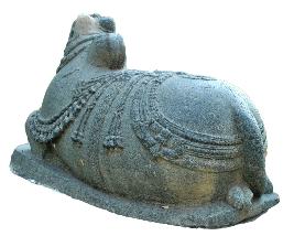 | Description / विवरण | Lateral view of a richly decorated Nandi with its neck turns towards right. There is a heavy hump on the back. The neck is adorned with three garland like necklaces. Around the back are broad belts of bells and tied on the back with hands hanging loose. |