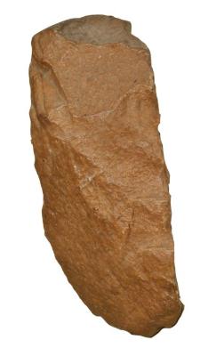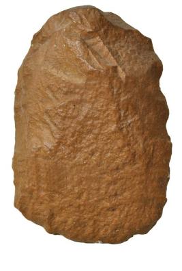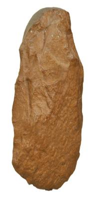 | Description / विवरण | A slightly triangular shape cleaver made on thick flake. It has semi-circular thin cleaving functional edge at the bottom and thick blunt buttend. The cutting edge is obtained by removal of large flake on its dorsal surface and later by alternative flaking method with hammer technique. It has bulb of percussion on its undersurface. It is lenticular in its cross section. |