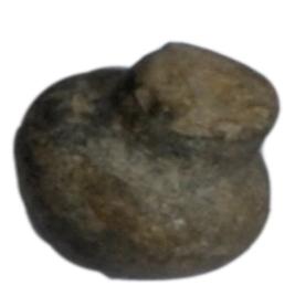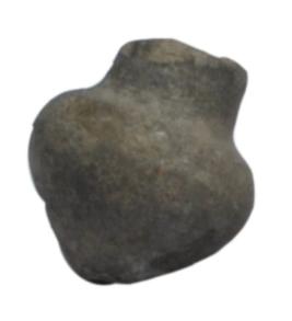 | Description / विवरण | A terracotta red ware pendent with slender body and raised circular ends on either side with a horizontal perforation. |