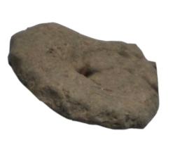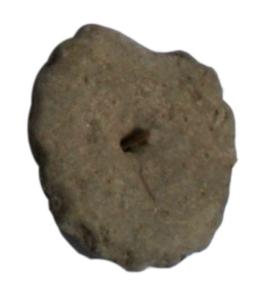 | Description / विवरण | A circular black ware pendant treated with fine black color slip. It has thick body and a perforation at the center. Edges mutilated. |