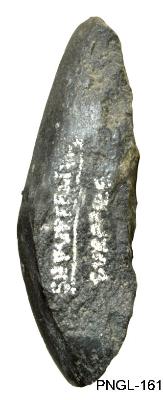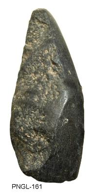 | Description / विवरण | Triangular shape stone axe having polished surface at the cutting edge on the dorsal surface and flaked body on the lateral and under surfaces. The polished surface extends from the functional edge to the pointed slightly blunt buttend. Plano-convex in its cross section. Irregularly broken functional edge suggests its usage. |