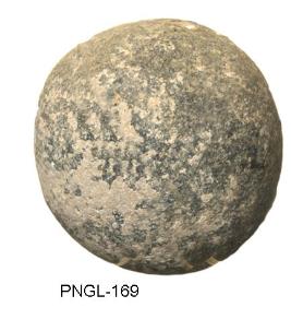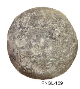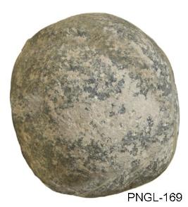 | Description / विवरण | A sling ball made on round pebble of white granite sand stone. Well patinated with ash. |