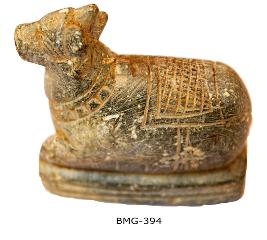| Description / विवरण | it is a nandhi sculpture made of lime stone, having bell mala on the neck and dress also have in the body. |