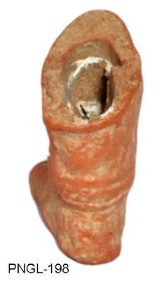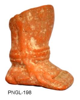 | Description / विवरण | Broken foot of a human figurine decorated with tri-stranded beaded anklet and also patta. |