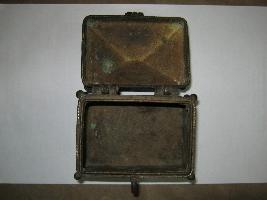 | Description / विवरण | This is a small metal box manufacture under wax metal technique it has four circular legs. Arrangement of copping and lock is also in it. Decoration on top and corners of the body are found. Arrangement of rope dots in criscrosses wavy decoration is noticed on it. Floral decoration is also noticed on it. |