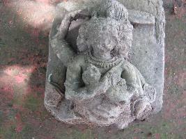 | Description / विवरण | A three faced, six handed deity. Her two principal hand s found crossed in front of chest, holding a small object like vajra in left hand ,right palm is broken, other two hands in left side broken, one mid rib sword is found behind her flaming hair, the right hand holding the sword is broken from elbow, other two right hands are broken . Tiara with bead design, necklace and armlets are the ornaments of the deity. |