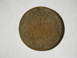 | Description / विवरण | Obverse has bald head of Edward VII in right facing profile mode. Edward VII king and emperor is written around the figure. Reverse has in a dotted circle one quarter anna, India,1909 writen in capital letters around which is found a floral wreath. |