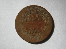| Description / विवरण | Obverse has bald head, face of Edward VII right in facing profil and Edward VII king, emperor written around it. Revese has one quarter anna, India 1906 written inside a dotted circle with a floral wreath around the circle. |