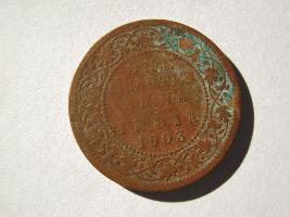 | Description / विवरण | Obverse has bald head of Edward VII around the head in right facing, profile. Edward VII king and emperor depicted. Reverse has in a dotted circle inside which one quarter anna, India 1903 are depicted with a floral reath around the dotted circle. |