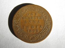 | Description / विवरण | Obverse has left faceing bust of Victoria with crown on head. Hair is arranged as a bun at back. Victoria empress is depicted around the head. Reverse has one quarter anna, India, 1899 depicted in capital letters in 5 lines inside a dotted circle with a floral wreath around the circle. |