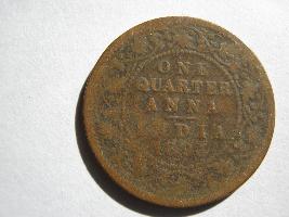 | Description / विवरण | Obverse has bust of English Queen Victoria facing left in profile with crown on head and hair arranged as bun on back of head. Victoria empress is found around the head. The reverse has inside the circle one quarter anna, India 1893 as legends. |