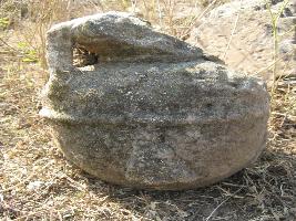 | Description / विवरण | The monolithic kalasa is elongated in shape. Upper part is slightly thicker than lower. Top of the kalasa is narrow and leaf like bands hang down. One leaf like band is visible. |