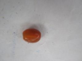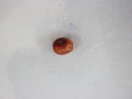 | Description / विवरण | An orange colour bead having a hole in exact middle. Oblong in shape. Both ends of the hole are slightly flattish. In middle a portion is in deep orange colour found as a patch. |