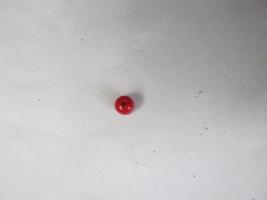| Description / विवरण | Small cylindrical coral bead of red colour found having a hole in exact centre. Small grove design is noticed around the hole face on one side |