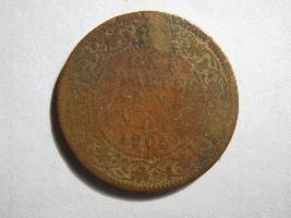 | Description / विवरण | Obverse has left facing bald head of Edward VII. Edward VII king and emperor depicted around the head. Reverse has a floral pattern near edges and a dotted circle in center. One quater anna, India, 1905 are depicted in capital letters in five lines. |