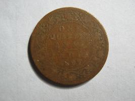 | Description / विवरण | Obverse has left facing profile, bust of Queen Victoria in center with Victoria empress depicted around the head. Reverse has one quarter anna, India, 1897 depicted inside dotted circle with a floral pattern around the circle. |