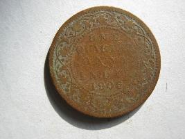 | Description / विवरण | Obverse-right facing profile bald head of edward vii center edward vii king and emperor is depicted around the head.Reverse-A floral decoration around the com near edge in center a dotted circle in this circle one querter anna india 1905 is depicted in five rown with capital letter. |